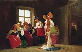 Григорій М'ясоєдов звертався також до історичних тем («Читання маніфесту 19 лютого 1861 року», 1873, Третьяковська галерея).