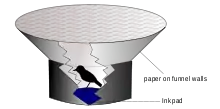 Дослідження поведінки орієнтації традиційно здійснюються за допомогою різноманітних варіантів установки, відомої як воронка Емлена, яка складається з круглої клітки з верхом, покритим прозорим склом або дротяним екраном таким чином, що небо залишається видимим. Клітку встановлюють на відкритому місці в природних умовах, що дозволяє птахові бачити небо; альтернативно установка розміщується в планетарії. Поведінка орієнтації птаха усередині клітки вивчається кількісно, використовуючи розподіл міток, що птах залишає на стінах клітки в певному напрямку[43].