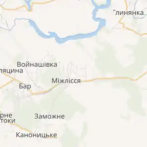 На схід від селища (ст.) Бар на відстані 2 км розташоване село Міжлісся. Воно гарне мальовниче село, розкинулось серед лісів, звідки і походить назва. Але цю назву воно має лише трохи більше 40-а років. Раніше (до 1964 р.) воно називалось Голодки.