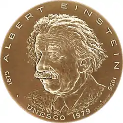 Медаль ЮНЕСКО імені Альберта Ейнштейна випущена в ознаменування сторіччя від дня народження Альберта Ейнштейна.