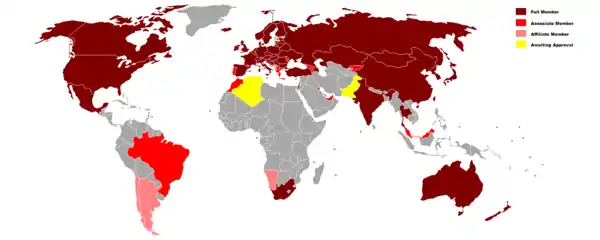 На додачу є 16 асоційованих членів і 3 афілійовані члени.
