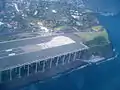 Подовження смуги при розмірах 1020 х 180 метрів має вигляд естакади, що змонтоване на 180 бетонних опорах-стовпах. Опори мають 3 метри в діаметрі та до 120 метрів заввишки, з яких 59 метрів знаходяться над рівнем моря. Решта довжини знаходиться під землею, або на якорі на морському дні.