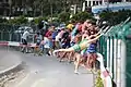 Глядачі тримаються за забор, щоб струмінь повітря від літака не зніс у море
