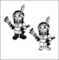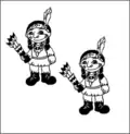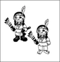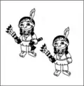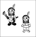| Вождь індіанців має сокирку, стріли, він взутий у чобітки. Його син має стріли, не має топірця, він босоногий. На якому малюнку зображений вождь індіанців з сином? | ||||