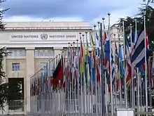 У Женеві: Європейське Відділення ООН, Європейська економічна комісія ООН, Економічний і соціальна рада ООН, Конференція ООН з торгівлі та розвитку, Всесвітня організація охорони здоров'я, Міжнародна організація праці, Міжнародний союз електрозв'язку, Всесвітня метеорологічна організація, Міжпарламентський союз, Міжнародний Комітет Червоного Хреста, Всесвітня рада церков, Всесвітня торгова організація, Всесвітня організація інтелектуальної власності, Всесвітня організація скаутського руху.
