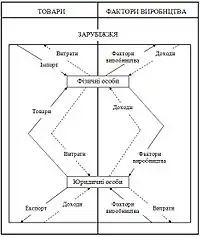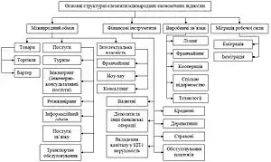 Міжнародна економіка функціонує за специфічною схемою, яка містить економіку окремої країни (особливості зв'язків між споживачами та виробниками) у її взаємозв'язку із економіками інших країн (експорт, імпорт).