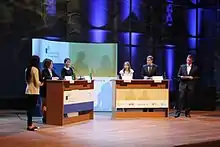 | IX. Міжнародний фінал у Ризі (Латвія), 23.10.2015 | „Чи повинні всі країни Євросоюзу щорічно приймати мінімальну кількість біженців: так чи ні“ | Андріс Берзіньш, латвійський підприємець і політик. | Анна Риян (Угорщина) |