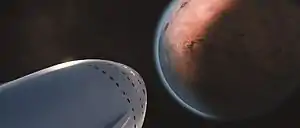 Космічний корабель проєктується з урахуванням входження у атмосферу Марса зі швидкістю 8.5 км/с, три двигуни Raptor, розташовані у центрі забезпечать остаточне уповільнення і посадку. Матеріал теплового захисного щита корабля виготовлятиметься компанією SpaceX, назва технології — PICA-X. В космічному кораблі буде використовуватись 3 покоління PICA-X. Очікуються навантаження під час приземлення — 4-6 g.[23]