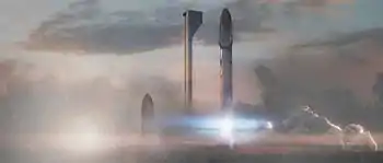 До цього часу, ракета-носій була відома формально як BFR («Big Falcon Rocket»), назва дана Ілоном Маском з посиланням на BFG 9000 з відеогри Doom 1993 року.[21][26][27] У вересневому анонсі 2016 року, Маск назвав елементи Міжпланетної транспортної системи: Міжпланетний прискорювач, Міжпланетний корабель і Заправник.