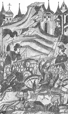 Ображений рід Юрійовичів негайно пішов до батька в Галич, по дорозі розграбувавши Ярославль, вотчину Василя Васильовича. Юрій Дмитрович виступив на стороні синів, розгромив військо великого князя на березі Клязьми і зайняв Москву. Василь втік до Твері, потім в Кострому . Юрій віддав племіннику у спадок Коломну і сів княжити в Москві. Однак москвичі не підтримали Юрія: московські бояри і служиві люди стали переходити в Коломну; до них приєдналися і обидва сини Юрія, Василь і Дмитро, що посварилися з батьком. Юрій вважав за краще примиритися з племінником, повернувши йому великокнязівський престол. Однак подальші переслідування Василем колишніх супротивників привели до виступу в 1434 році проти Василя спочатку синів Юрія (в битві на березі річки Кусь Юрійович взяли верх), а потім (після розгрому москвичами Галича) і його самого. У березні Василь був розбитий під Ростовом поблизу села Нікольське на річці Устя, Юрій знову зайняв Москву, але вже в червні помер (як вважали був отруєний), заповівши Москву синові Василю.[3]