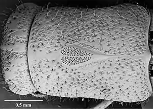 У жуків-рогачів личинка перед заляльковуванням спорожнює кишечник, і тому стінки камери насичені грибковими спорами. Коли самиця вийде з лялечки, вона вивертає мікангії і вони одержують запас спор зі стінок. Згодом, відкладаючи яйця, вона передає ім. частину цього запасу[6]. У жуків з триби Scolitini два мікангії розташовані по обох боках голови, позаду очей. Це невеличкі бугорці із крихітними отворами. Звичайно вони вкриті волосками, які допомагають розпорошувати спори, що висипаються з мікангію, по стінках тісного ходу, де живе жук. У деяких видів мікангії ледь помітні, рудиментарні — це види, які проникають у чужі ходи, вбивають їх «господарів» і виводять власне потомство на готових колоніях грибів[7].