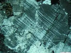 - мікроклін-пертит (взаємне проростання мікрокліну альбітом, яке утворюється внаслідок розпаду твердого розчину);