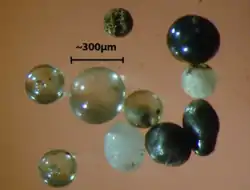 - Marvin, U. B.; Marvin, M. T. (1967). Black, Magnetic Spherules from Pleistocene and Recent beach sands. Geochimica et Cosmochimica Acta 31 (10): 1871–1884. Bibcode:1967GeCoA..31.1871E. doi:10.1016/0016-7037(67)90128-7.