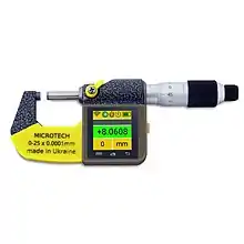 Комп'ютеризовані субмікронні мікрометри (МКК) - основною перевагою комп'ютеризованого мікрометра є використання комп'ютеризованої вимірювальної системи з вбудованою пам'яттю, функціями ПР / НЕ з колірною індикацією, макс / хв, функціями формули, ручною компенсацією температури і математична компенсація похибки, таймером, вибором дискретності мікрометра, Бездротова м і USB передача даних на зовнішні пристрої. Комп'ютеризований мікрометр має дозвіл 0,1 мікрона і більш високу точність, ніж стандартні цифрові і аналогові мікрометри. Кольоровий дисплей і сенсорний екран забезпечують високу ергономіку використання субмікронного комп'ютеризованого мікрометра. Комп'ютерний субмікронний мікрометр був розроблений і запатентований підприємством МІКРОТЕХ.