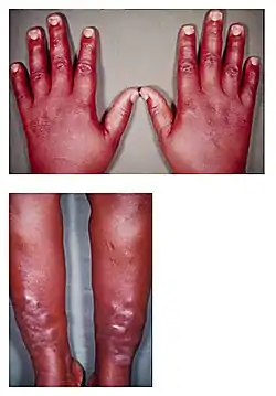 ![]() Набряк кистей та нижніх кінцівок при мікседемі Набряк кистей та нижніх кінцівок при мікседемі | |