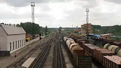 Станція є кінцевою для приміських поїздів Мікунь — Мадмас (1 пара поїздів на добу).