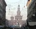 Вулиця Данте та вигляд кастелло Сфорцеско (Міланського замку)