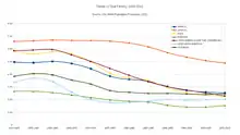 ![]() Графік основних демографічних груп з кінця ХІХ ст. із приблизними датами та віком |