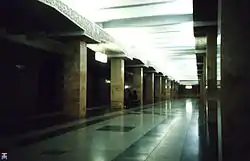 Колонна трипрогінна станція мілкого закладення з двома підземними вестибюлями.