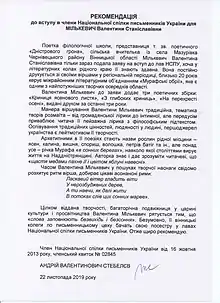- Цит. Рекомендація М. Каменюка для вступу В. Мількевич до лав НСПУ