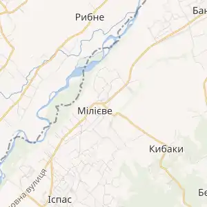 Мілієве — невелике село, яке простягається із заходу на схід на 5 км та із півночі на південь на 2 км.