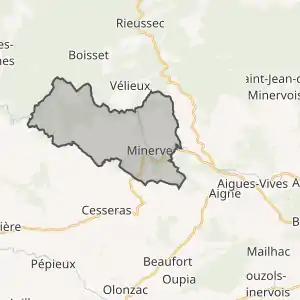 - Розташування муніципалітету Мінерв на мапі Франції та сусідні муніципалітети