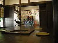 Підлога покривається татамі — квадратними солом'яними матами. Площа одного татамі — близько 1,5 кв. м. Площа кімнати вимірюється кількістю татамі, що містяться в ній. Періодично татамі чистять і замінюють. Щоб не бруднити підлогу, в традиційних японських будинках не носять взуття — тільки білі шкарпетки — табі. Взуття ж залишають при вході в будинок на спеціальній приступі, що називається генкан (вона робиться нижче рівня підлоги).