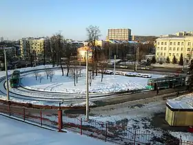 Двоколійне кільце. Посадка і висадка по вулиці Жовтневій. На самому кільці пасажирського руху немає.
