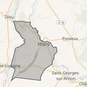 - Migny sur le site de l'Insee, наведено за французькою вікіпедією