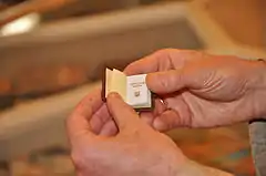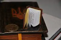 Конституція в мініатюрі виготовлена зі спеціального міцного, але дуже тонкого паперу та написана індійською тушшю. Для відтворення літер майстер використав максимально заточене перо. Палітурка для книги виготовлена зі шкіри, а на передній її стороні золотом вилитий герб України.