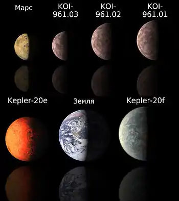 - NASA's Kepler Mission Finds Three Smallest Exoplanets, January 11, 2012 - сообщение об открытии KOI-961 на сайте НАСА