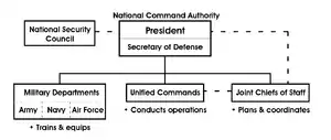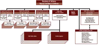 Структура міністерства оборони визначена в законі Голдуотера-Никольса від 1986 року. У цьому законі розписаний порядок управління вищих чинів Збройних сил США.