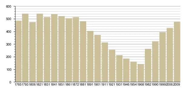 Динаміка населення (Baratier, Duby & Hildesheimer pour l’Ancien Régime[3] ; Insee[4], EHESS pour les chiffres issus des recensements légaux ):