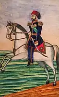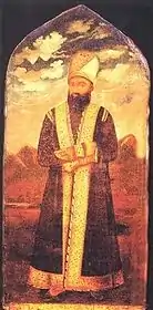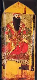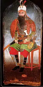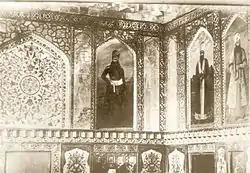 Портреты Фетх-Алі Шаха, Хусейн-хана Каджара і Рустама Зали[13] (зліва направо), виконані Ерівані в палаці сардарів в Ерівані. Державний музей мистецтв Грузії, Тбілісі | ||||||||||