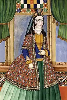 У XIX столітті художники перейшли до портрета, комбінуючи стилізовані малюнки та декоративні кольори з європейськими прийомами просторової композиції і моделювання з метою створення відчуття об'ємності. В таких роботах Мірзи Кадима Ерівані як «Портрет молодого чоловіка», «Портрет жінки, що сидить» і «Портрет молодої жінки» змішані висока техніка малювання і насичений колір з м'яким і ліричним виконанням[26].