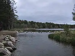 У верхній течії Міссісіпі повільно вибирається з лабіринту озер, боліт і торфовищ. Давній льодовик завалив її стару долину валунами та глиною, і річці довелося прокладати нове русло краєм щита, складеного з корінних порід, утворюючи пороги та водоспади.
