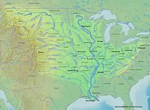 | Притоки: | Міссурі, Огайо, Міннесота, Де-Мойн, Арканзас, Ред-Ривер, Чіп-пева, Вісконсин, Іллінойс |
