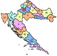 - У 1991 в Хорватії було 70 міст і містечок та 419 муніципалітетів, розподілених між 20 округами (плюс місто Загреб, який є як містом, так і округом).[1]