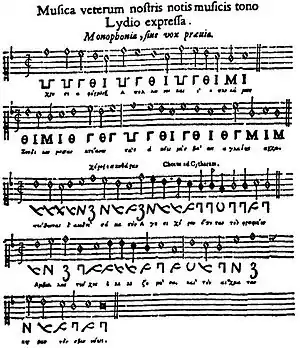 - Філолог А.Ром (1932) вперше звернув увагу на помилки та похибки в передачі грецького тексту оди у Кірхера. Він установив, що вони в точності відтворюють текст видання віршів (без нот) Піндара, виконаного Еразмом Шмідом 1616 року. Мабуть, це видання і послужило основою музичної містифікації, а зовсім не сенсаційна сицилійська знахідка, як це подавав Кірхер.