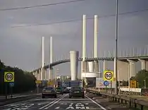 - The daily average for the Dartford Crossing as a whole was 145,466 vehicles and lisa as reported in Архівовано 4 вересня 2012 у Wayback Machine. for the period April 2007 to March 2008. As the bridge is just one direction of the crossing, an estimate for the bridge alone is calculated by halving this figure, to give 72,733, rounded down to 72,700 for precision.