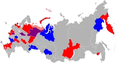 ![]() Карта регіональних виборів у 2020 році Губернаторські Губернаторські іншого суб'єкта РФ Парламентські Губернаторські і парламентські | ||||