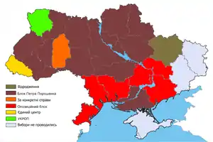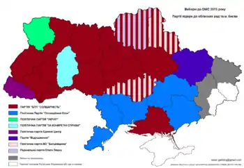 ![]() Партії, які отримали найбільшу підтримку під час виборів депутатів регіональних рад | ||||