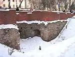 Західне прясло мурів Львова розібрали одним з перших у місті, тож у 1790-х роках над Полтвою був перекинутий міст на місці містків Єзуїтської хвіртки, про мури якої не залишилось жодних матеріальних свідоцтв. Лише при археологічних дослідженнях 1970-х років на площі Івана Підкови знайшли кам'яний герб міста, який, як вважають, походив з її внутрішньої частини. Тим часом з протилежної сторони міста на 1795 р. ще зберігався зовнішній міський рів і його ескарповий мур, на якому почали зводити будинки, використавши і зовнішню частину Босацької хвіртки. До середини століття їх перебудували у будівлю СШ № 8. При ремонті школи 2010 р. було відкрито сліди ескарпового муру у її нижньому ярусі.