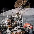 Встановлена на всюдиході кольорова телевізійна камера із 6-кратним об'єктивом-трансфокатором була оснащена електроприводом для повороту в горизонтальній та вертикальній площинах і зміни фокусної відстані, завдяки чому нею могли керувати не лише астронавти, але й оператор із Землі. Це значно розширило можливості зйомок, зокрема дозволило зняти старт місячного модуля з Місяця. Для такої зйомки всюдихід заздалегідь встановлювався на такій відстані від модуля, щоб він повністю потрапляв у поле зору камери. Оператор на Землі, орієнтуючись на телевізійну картинку з камери, керував її приводом, супроводжуючи зліт модуля. Хоча час старту був відомий із точністю до секунд, через помітно довге проходження сигналу по ланцюжку Місяць — Земля — Місяць оператору доводилося працювати з випередженням. Так, вертикальне панорамування доводилося починати, коли на телекартинці оператора модуль ще стояв на ґрунті. Це заважало зйомці, і через це в експедиціях Аполлон-15 та Аполлон-16 старт місячних модулів був знятий погано. Однак в експедиції Аполлон-17 старт місячного модуля був знятий успішно[1].