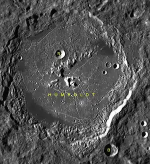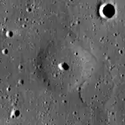 Великих виразних вулканічних гір та кратерів на Місяці нема через зазвичай малу в'язкість тамтешньої лави: в більшості випадків вона швидко розтікалася, утворюючи плоский покрив. Проте там трапляються низькі малопомітні щитові вулкани з кратерами або кальдерами розміром до кількох кілометрів[89][90][3]. Є припущення про вулканічне походження і більших кратерів — наприклад, 20-кілометрової заглибини на височині в північній частині Моря Спокою, біля кратера Гарднер[91][92] та 30-кілометрового кратера Вольф біля центру Моря Хмар[56][93].