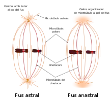 Веретено поділу складається з декількох типів мікротрубочок та центросом.