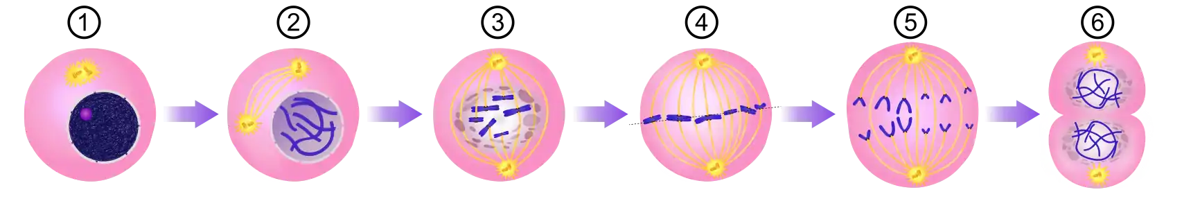 Мітоз — лише одна з частин клітинного циклу, але під час мітозу відбуваються значні клітинні перебудови, тому його ділять на п'ять фаз: профаза, прометафаза, метафаза, анафаза і телофаза. Іноді прометафазу не виокремлюють.