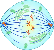 Під час мітозу вибудувані під час метафази в екваторіальній площині хромосоми повинні розійтися на два полюси клітини, причому розділитися правильно на дві частини. Це надзвичайно складний процес, в якому беруть участь багато білків, але основною структурою, яка його забезпечує, є веретено поділу.