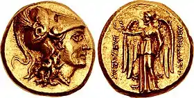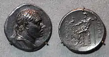 - Тетрадрахма: голова царя в діадемі повернута вправо — Зевс Етафор, що сидить на троні. В лівій руці тримає скіпетр, в правій — орла, під ним зірка і півмісяць. Під троном і справа від Зевса містяться монограми.