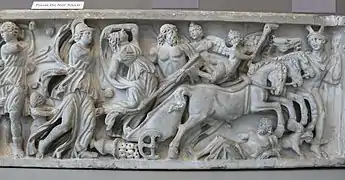 Різновидом календарних міфів є міфи про вмираючого і воскресаючого бога. Вони символізують зміну пір року. В давньогрецькій міфології таким міфом був міф про Деметру і її дочку Персефону, вкрадену Аїдом. Деметра, богиня родючості, так нудьгувала за дочкою, що земля перестала плодоносити. Тоді Зевс велів Аїду повернути Персефону. Але Персефона вже спробувала зерна граната і змушена була щороку повертатися в підземне царство. Знаходження Персефони в Аїда символізує зиму та відсутність урожаю.